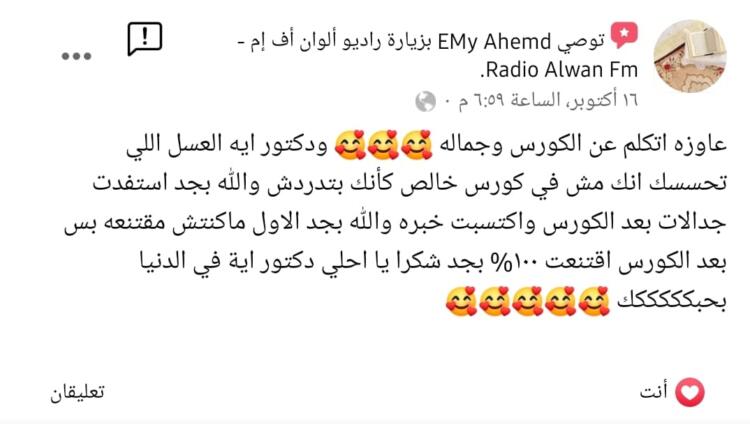 بعد الكورس إقتنعت 100% .. هكذا أوصت الطالبة “إيمي أحمد” صورةتقييمات By محرر ألوان إف إم Last updated ديسمبر 8, 2021 0 Share FacebookTwitterGoogle+ReddItWhatsAppPinterestالبريد الالكتروني Alwan FMRadio Alwan FMألوان FMإذاعةراديو ألوان FMراديو ألوان إف إم 0 Share