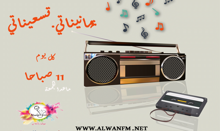 تمانيناتي. تسعيناتي صورةموسم أول 2022 By محرر ألوان إف إم Last updated أبريل 29, 2023 0 Share FacebookTwitterGoogle+ReddItWhatsAppPinterestالبريد الالكتروني استمع لساعه من أحلي وأجمل أغاني جيل الثمانينات والتسعينات كل يوم من الساعه 11 إلي الساعه 12 الضهر – ماعدا الجمعة، بدون توقف علي ألوان إف إم Alwan FMRadio Alwan FMتمانيناتي. تسعيناتيراديو ألوان FMراديو ألوان إف إم 0 Share